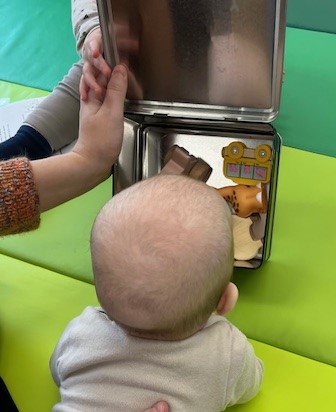 Vi kigger hvad der gemmer sig i sangkufferten. Er det en bus, synger vi "Hjulene på bussen". Sange der understøtter sang og sprog for de små. Samtidig afprøver vi instrumenter og lytter til musiksanseriet.